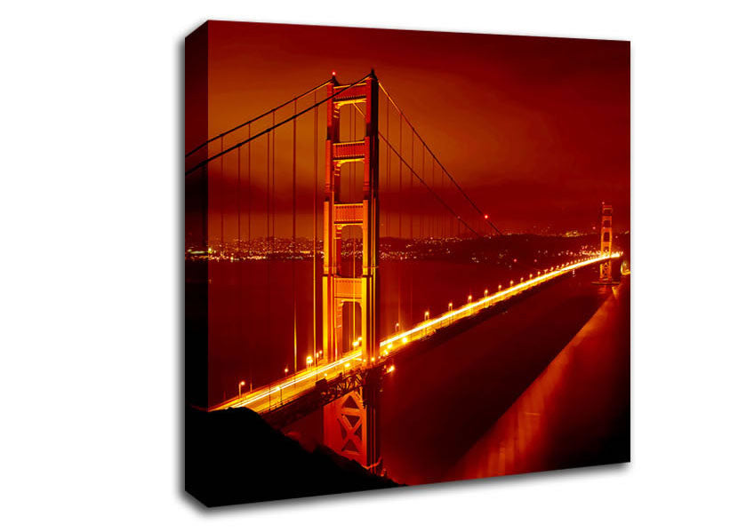 San Francisco Golden Gate Bridge Red Glow Square Canvas Print handmade in the UK. Stretched over a 2 inch thick wooden box frame, ready to hang on your wall.