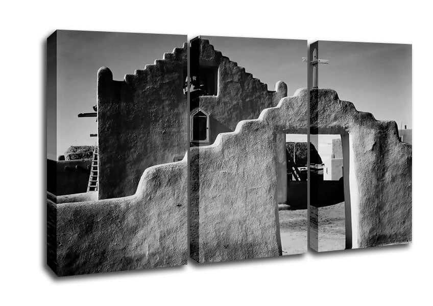 Ansel Adams Church In Taos Pueblo New Mexico 2 3 Panel Canvas Print handmade in the UK. Stretched over a 2 inch thick wooden box frame, ready to hang on your wall.
