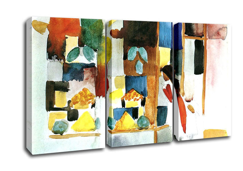 August Macke Children At The Vegetable Shop 1 3 Panel Canvas Print handmade in the UK. Stretched over a 2 inch thick wooden box frame, ready to hang on your wall.
