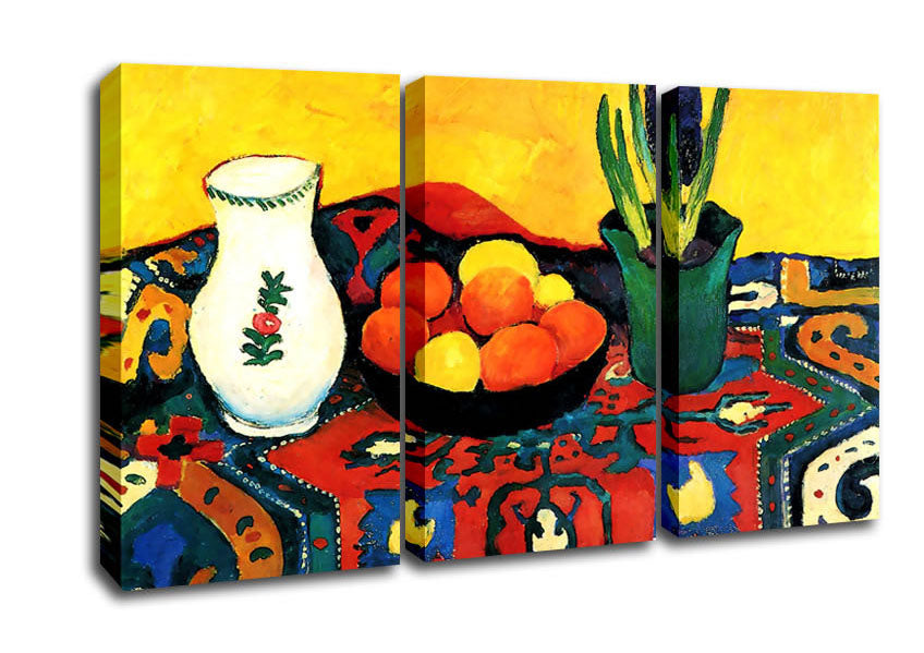 August Macke Still Life With Hyacinthe 3 Panel Canvas Print handmade in the UK. Stretched over a 2 inch thick wooden box frame, ready to hang on your wall.