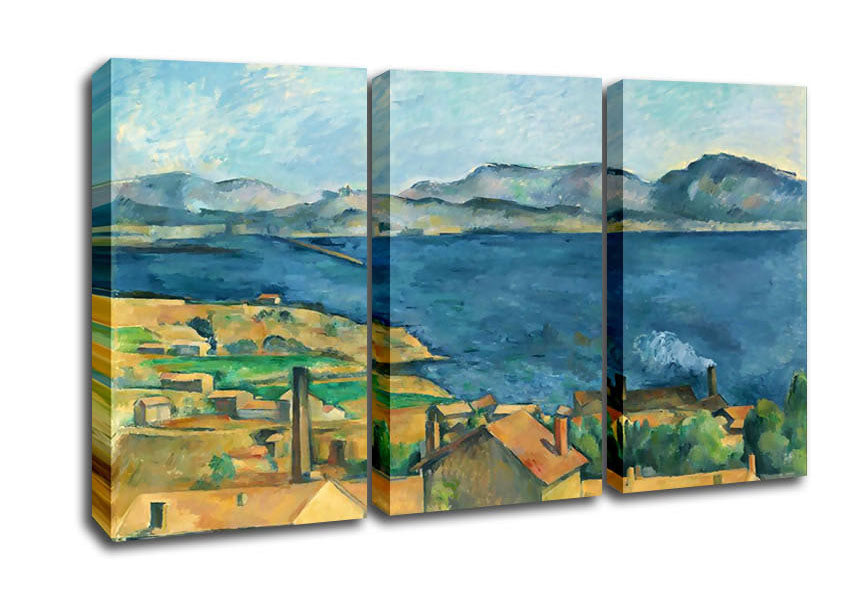 Cezanne The Bay Of Marseilles 3 Panel Canvas Print handmade in the UK. Stretched over a 2 inch thick wooden box frame, ready to hang on your wall.
