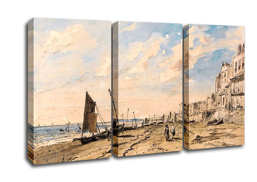 Constable Brighton Beach 3 Panel Canvas Print handmade in the UK. Stretched over a 2 inch thick wooden box frame, ready to hang on your wall.