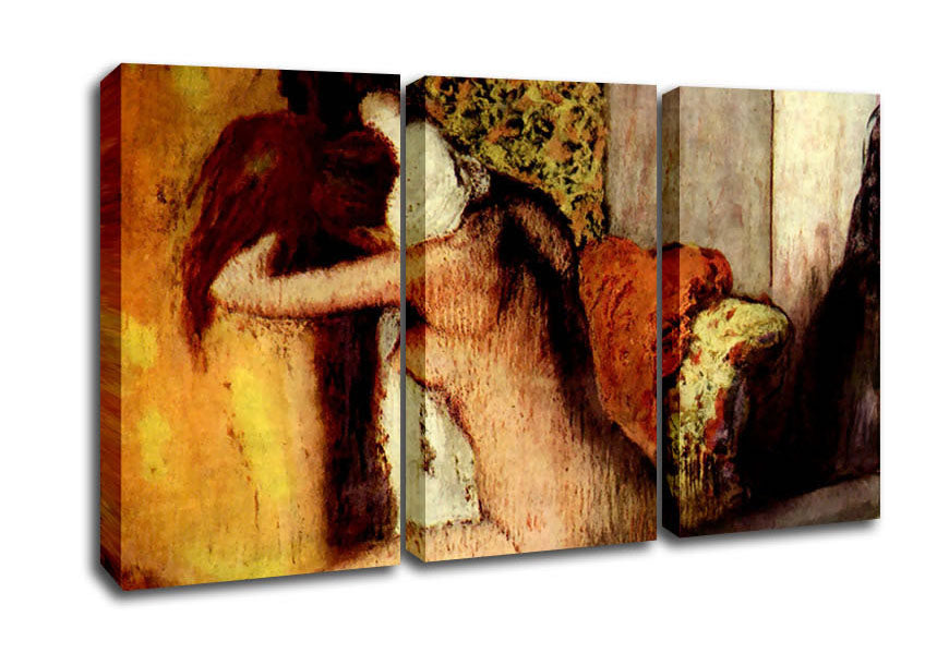 Degas After Bathing 2 3 Panel Canvas Print handmade in the UK. Stretched over a 2 inch thick wooden box frame, ready to hang on your wall.