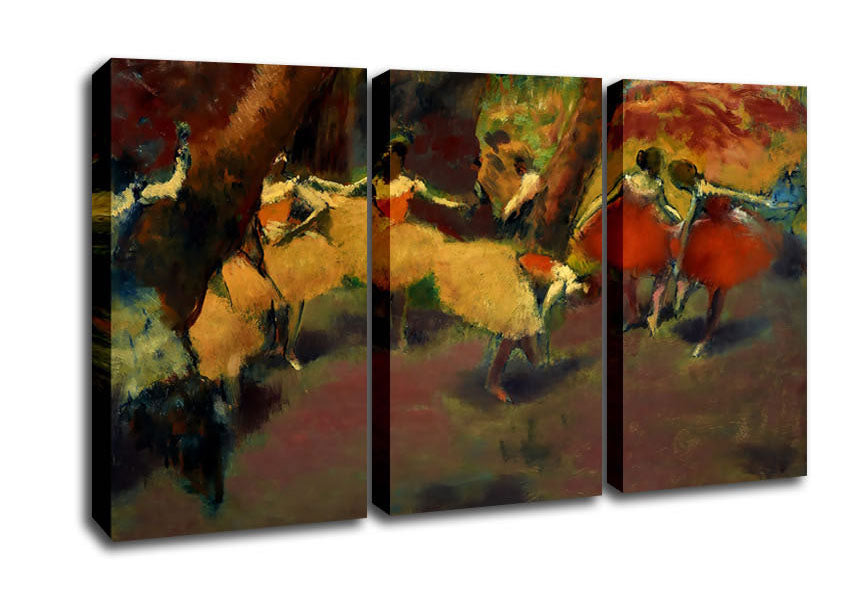 Degas Before The Performance 3 Panel Canvas Print handmade in the UK. Stretched over a 2 inch thick wooden box frame, ready to hang on your wall.