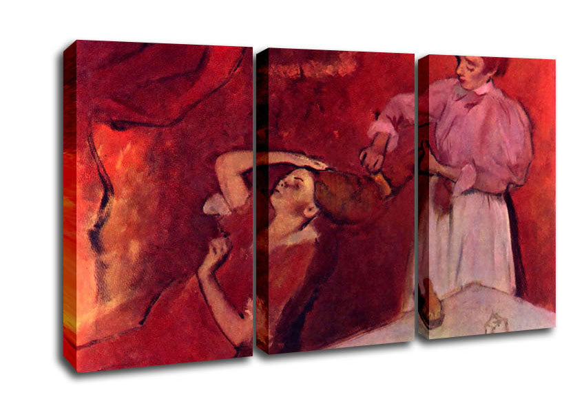 Degas Combing Hair 3 Panel Canvas Print handmade in the UK. Stretched over a 2 inch thick wooden box frame, ready to hang on your wall.