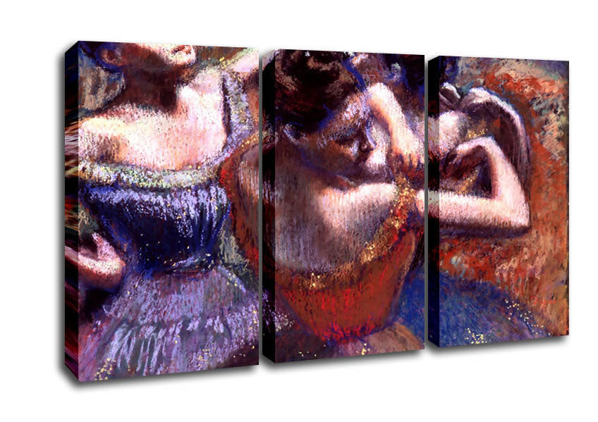 Degas Dancers 3 Panel Canvas Print handmade in the UK. Stretched over a 2 inch thick wooden box frame, ready to hang on your wall.
