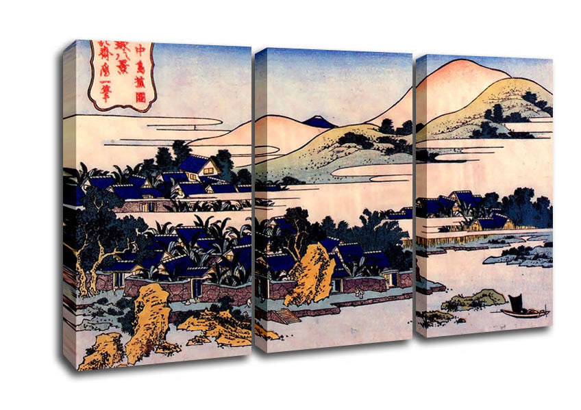 Hokusai Banana Plantation At Chuto 3 Panel Canvas Print handmade in the UK. Stretched over a 2 inch thick wooden box frame, ready to hang on your wall.