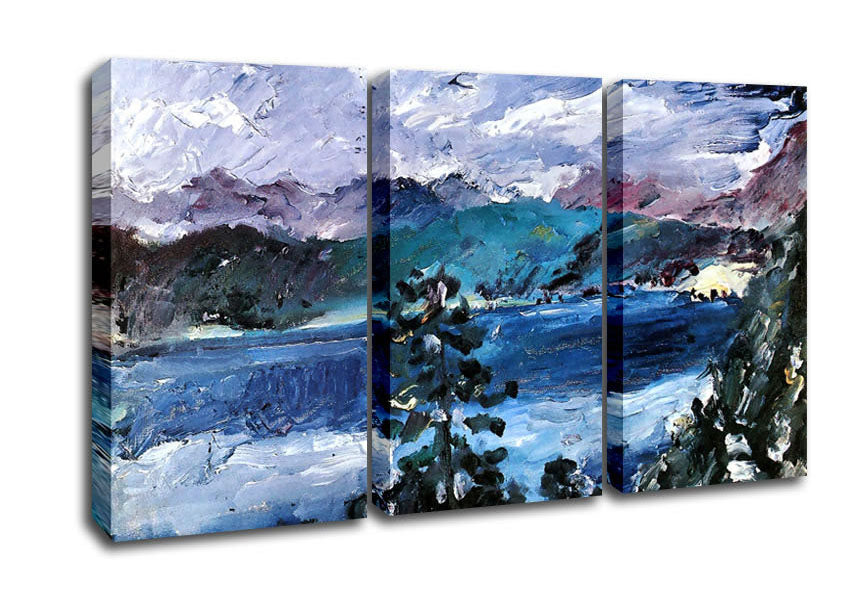 Lovis Corinth Walchensee With Larch 3 Panel Canvas Print handmade in the UK. Stretched over a 2 inch thick wooden box frame, ready to hang on your wall.