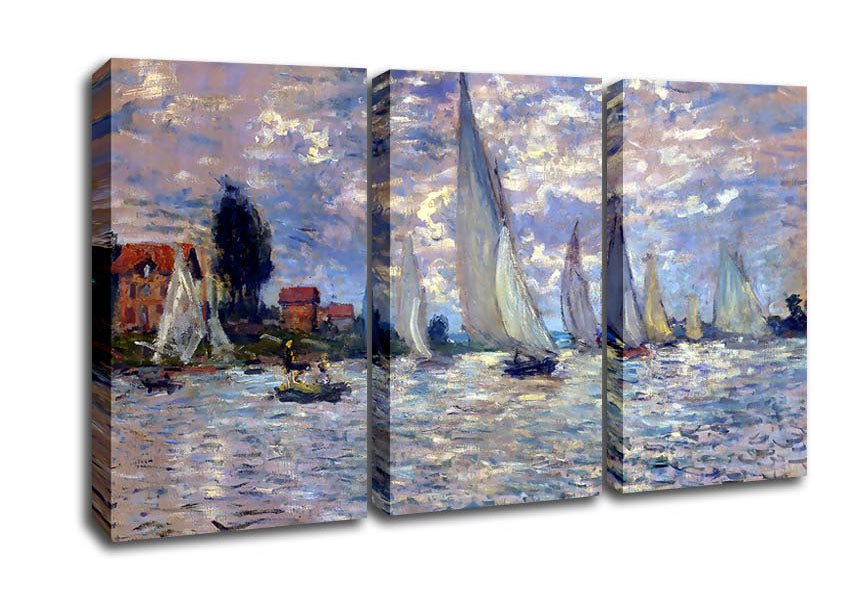 Monet Les Barques 3 Panel Canvas Print handmade in the UK. Stretched over a 2 inch thick wooden box frame, ready to hang on your wall.