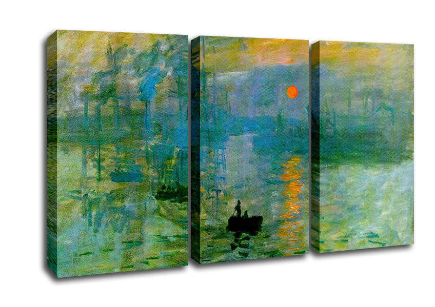 Monet Sunset 3 Panel Canvas Print handmade in the UK. Stretched over a 2 inch thick wooden box frame, ready to hang on your wall.