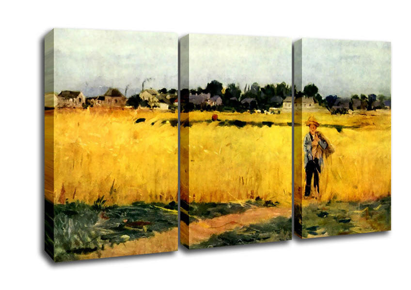 Morisot Cornfield 3 Panel Canvas Print handmade in the UK. Stretched over a 2 inch thick wooden box frame, ready to hang on your wall.