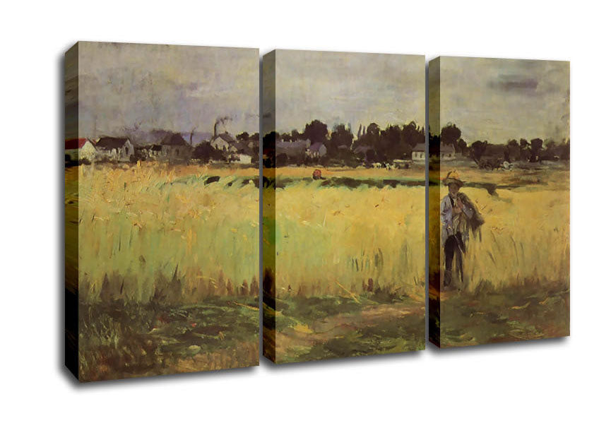 Morisot In Wheat Field 3 Panel Canvas Print handmade in the UK. Stretched over a 2 inch thick wooden box frame, ready to hang on your wall.