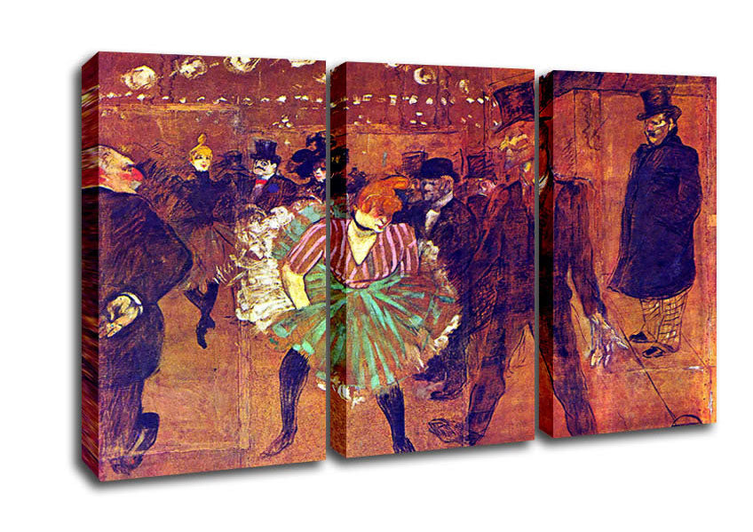 Toulouse Lautrec Ball At Moulin-Rouge 3 Panel Canvas Print handmade in the UK. Stretched over a 2 inch thick wooden box frame, ready to hang on your wall.