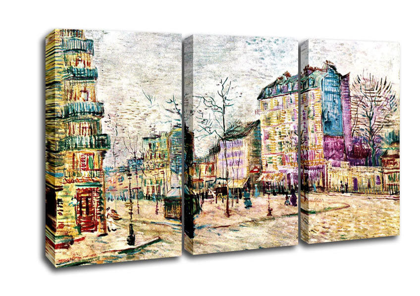 Van Gogh Boulevard De Clichy 3 Panel Canvas Print handmade in the UK. Stretched over a 2 inch thick wooden box frame, ready to hang on your wall.