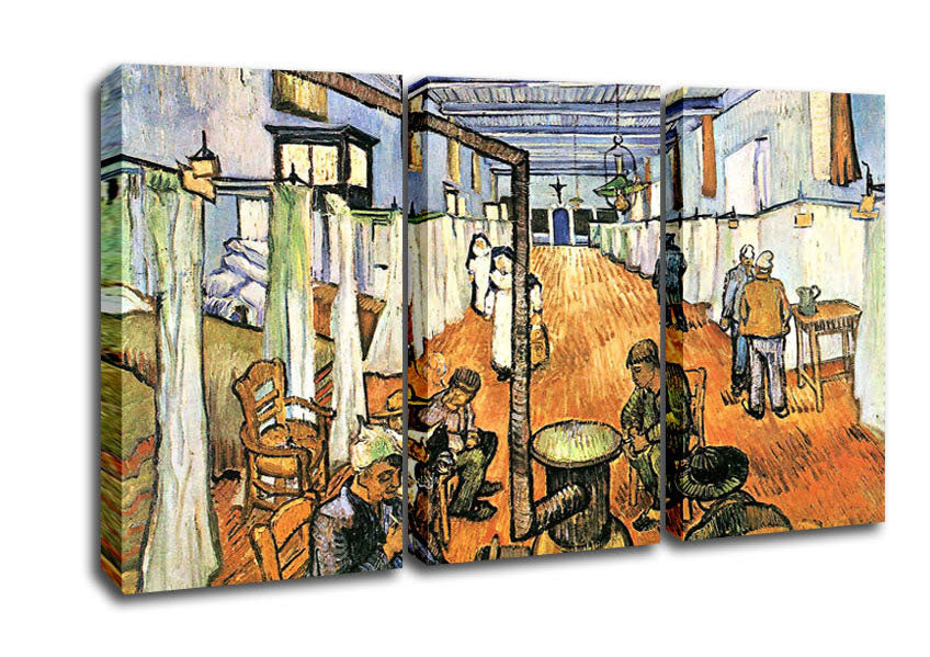 Van Gogh Dormitory In The Hospital In Arles 3 Panel Canvas Print handmade in the UK. Stretched over a 2 inch thick wooden box frame, ready to hang on your wall.