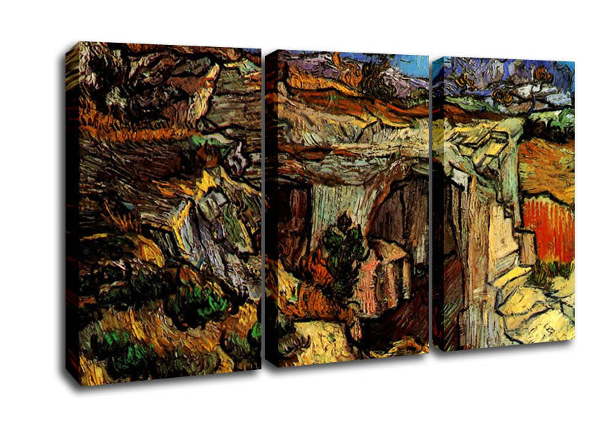 Van Gogh Entrance To A Quarry Near Saint-Remy 3 Panel Canvas Print handmade in the UK. Stretched over a 2 inch thick wooden box frame, ready to hang on your wall.
