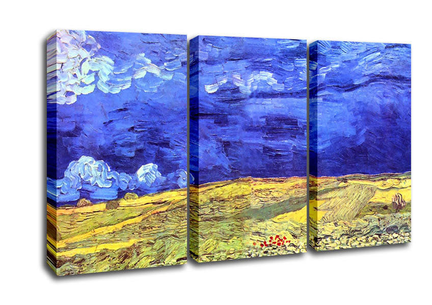 Van Gogh Field Under Storm Heaven 3 Panel Canvas Print handmade in the UK. Stretched over a 2 inch thick wooden box frame, ready to hang on your wall.