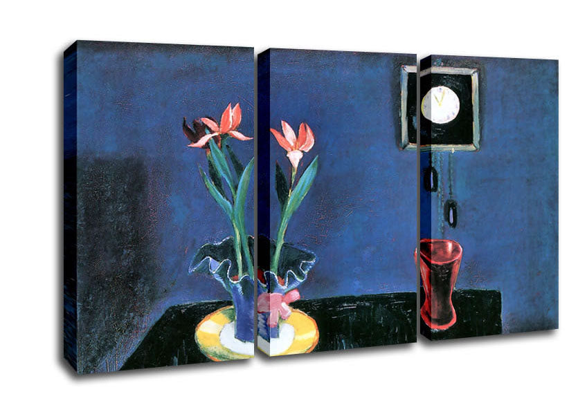 Walter Gramatte Still Life With Clock And Tulip Pot 3 Panel Canvas Print handmade in the UK. Stretched over a 2 inch thick wooden box frame, ready to hang on your wall.