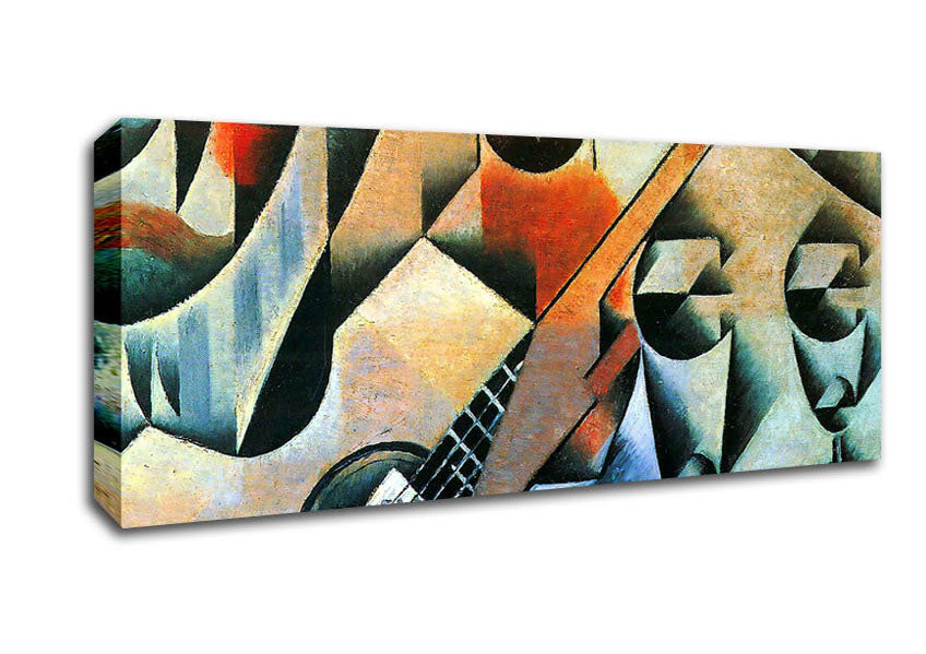 Juan Gris Banjo (Guitar) And Glasses Panoramic Canvas Print handmade in the UK. Stretched over a 2 inch thick wooden box frame, ready to hang on your wall.