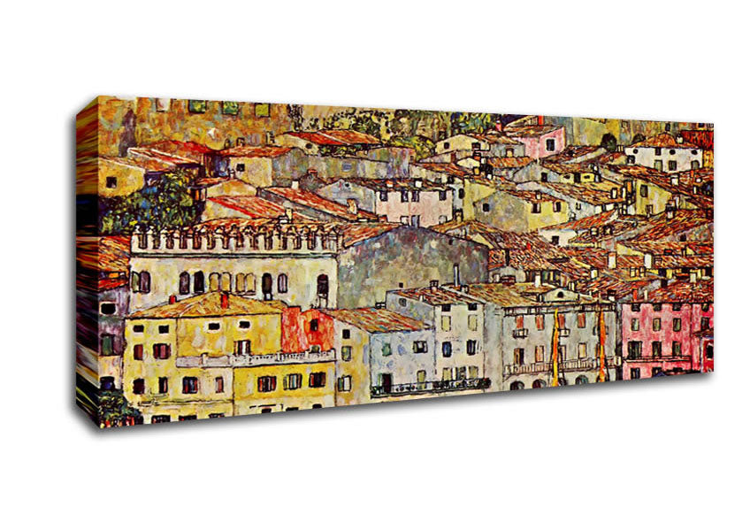 Klimt Malcena At The Gardasee Panoramic Canvas Print handmade in the UK. Stretched over a 2 inch thick wooden box frame, ready to hang on your wall.