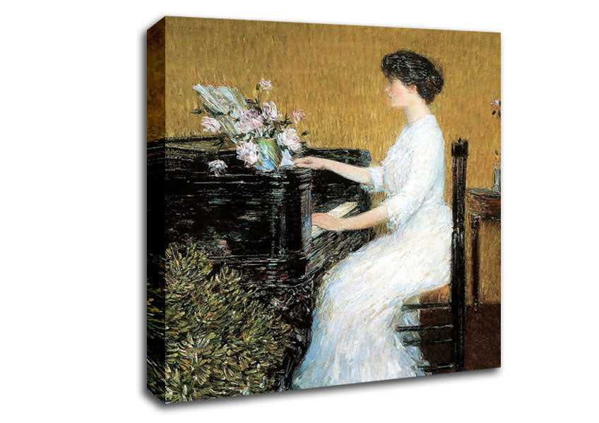 Hassam At The Piano Square Canvas Print handmade in the UK. Stretched over a 2 inch thick wooden box frame, ready to hang on your wall.