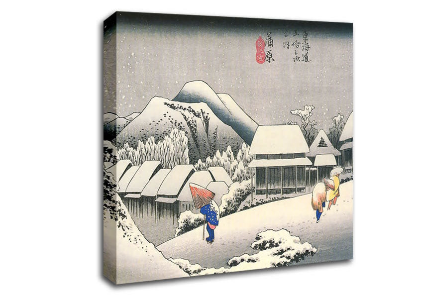 Hiroshige A Village In The Snow Square Canvas Print handmade in the UK. Stretched over a 2 inch thick wooden box frame, ready to hang on your wall.