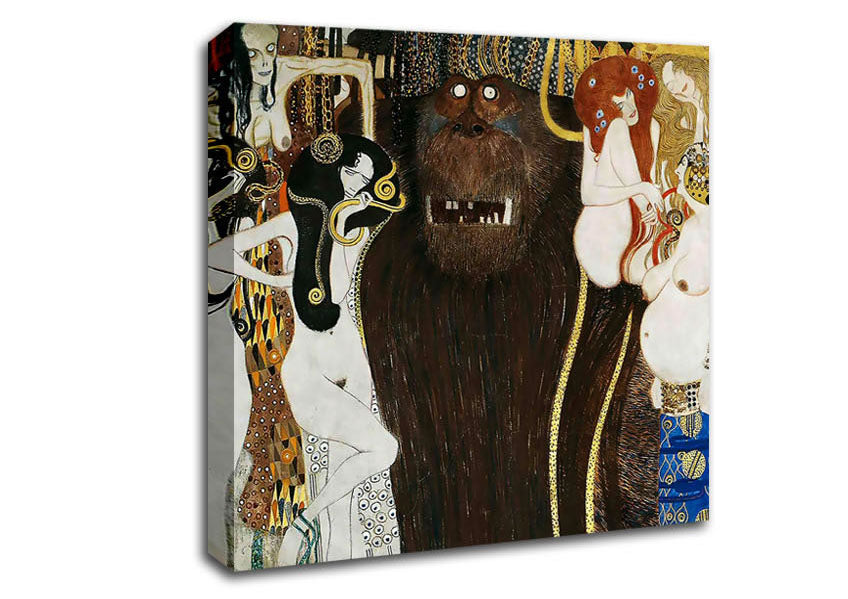 klimt Beethoven Frieze Square Canvas Print handmade in the UK. Stretched over a 2 inch thick wooden box frame, ready to hang on your wall.
