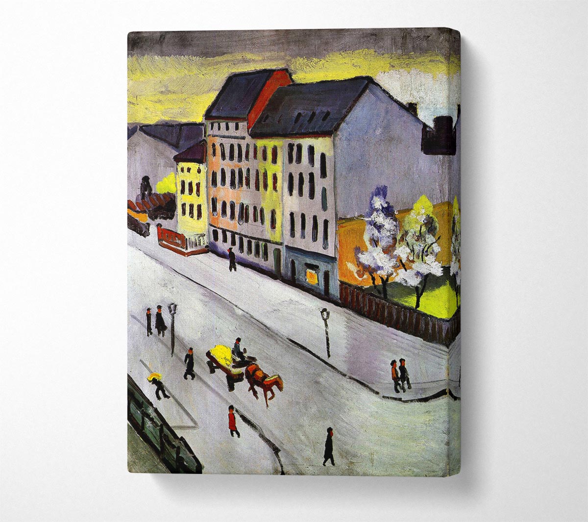 August Macke Street In Gray Canvas Print handmade in the UK. Stretched over a 2 inch thick wooden box frame, ready to hang on your wall.