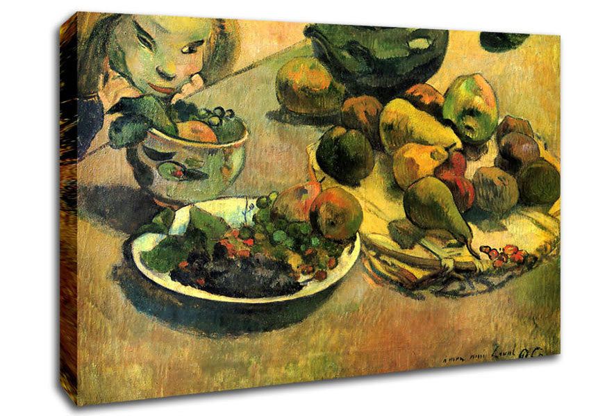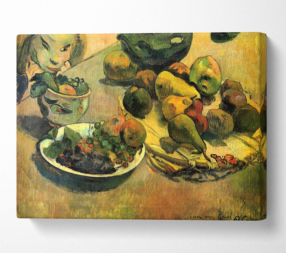 Gauguin Still Life With Fruit Canvas Print handmade in the UK. Stretched over a 2 inch thick wooden box frame, ready to hang on your wall.