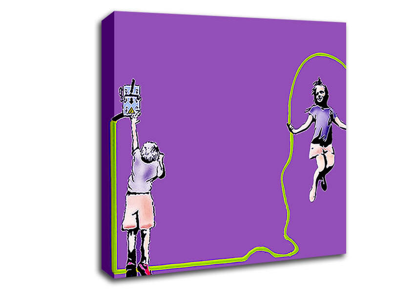 Electric Skipping Rope Purple Square Canvas Print handmade in the UK. Stretched over a 2 inch thick wooden box frame, ready to hang on your wall.