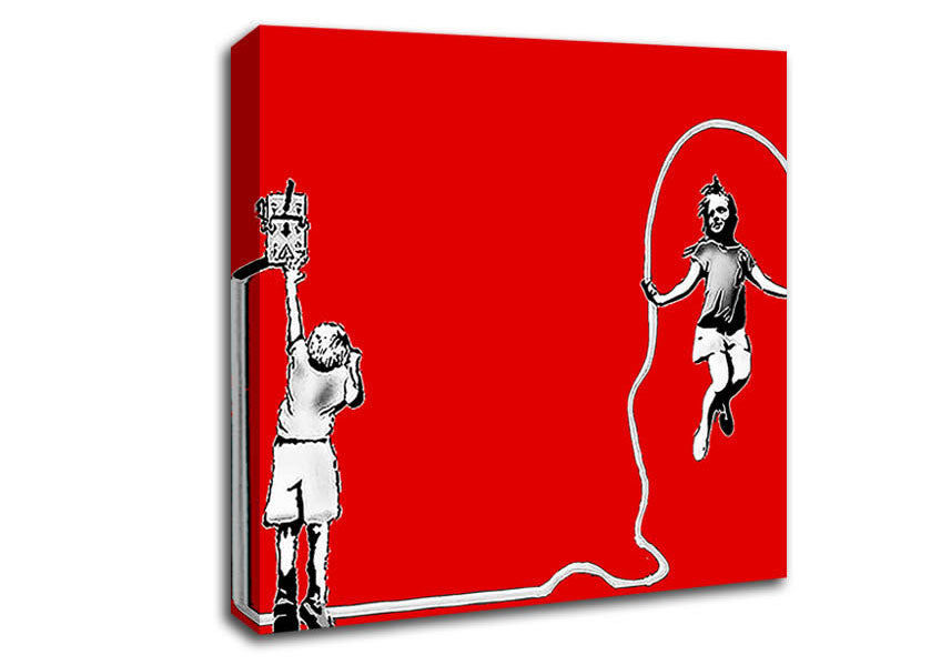 Electric Skipping Rope Red Square Canvas Print handmade in the UK. Stretched over a 2 inch thick wooden box frame, ready to hang on your wall.