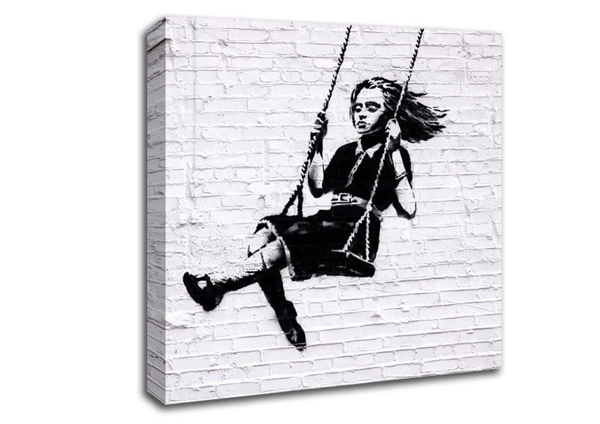 Girl On Swing Square Canvas Print handmade in the UK. Stretched over a 2 inch thick wooden box frame, ready to hang on your wall.