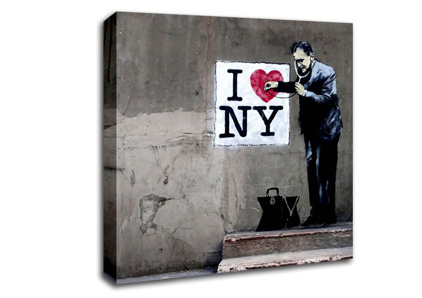 Heart Beat Of New York Square Canvas Print handmade in the UK. Stretched over a 2 inch thick wooden box frame, ready to hang on your wall.