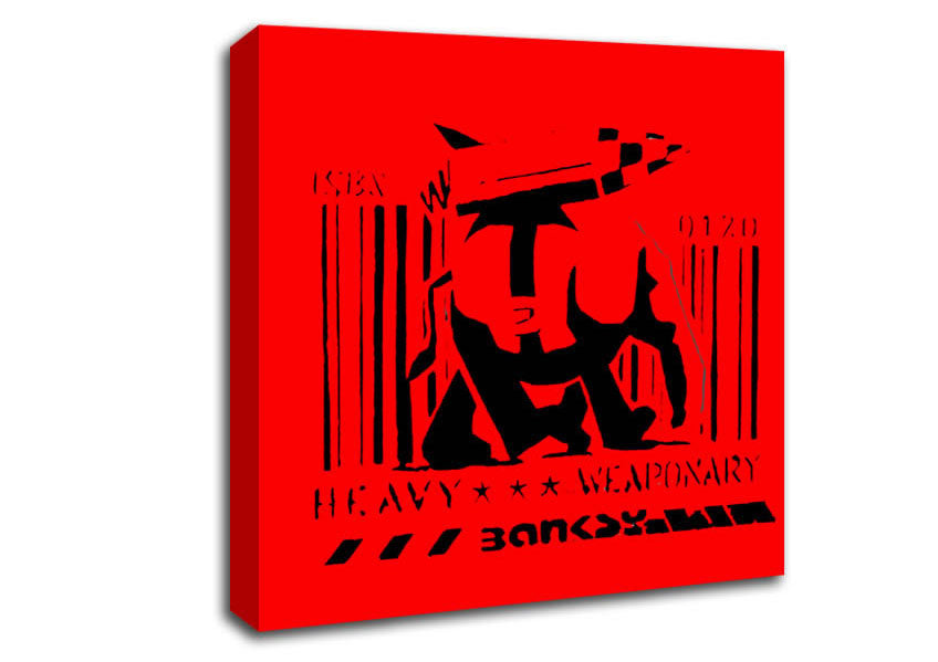 Heavy Weaponry Red Square Canvas Print handmade in the UK. Stretched over a 2 inch thick wooden box frame, ready to hang on your wall.