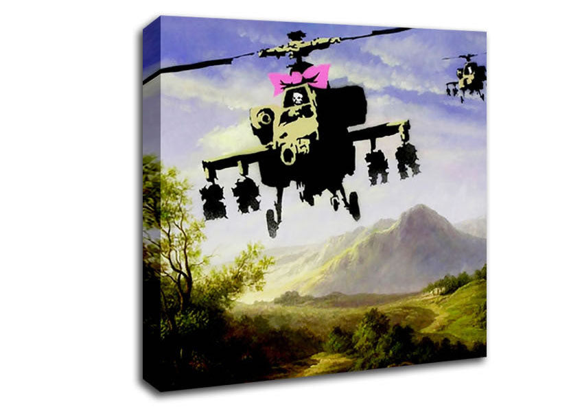 Helicopter Bow Square Canvas Print handmade in the UK. Stretched over a 2 inch thick wooden box frame, ready to hang on your wall.