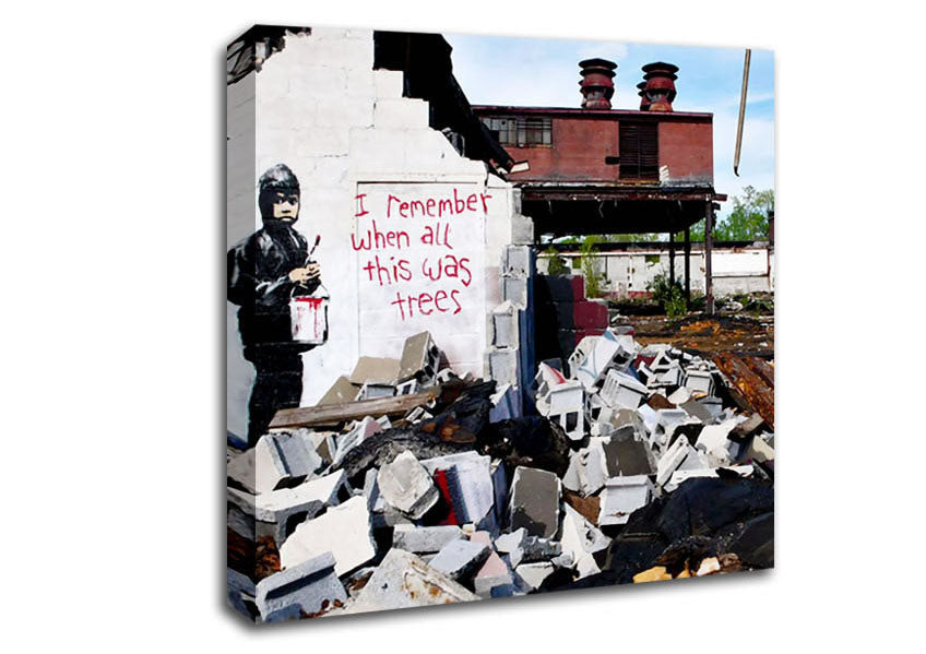 I Remember When All This Was Trees Square Canvas Print handmade in the UK. Stretched over a 2 inch thick wooden box frame, ready to hang on your wall.