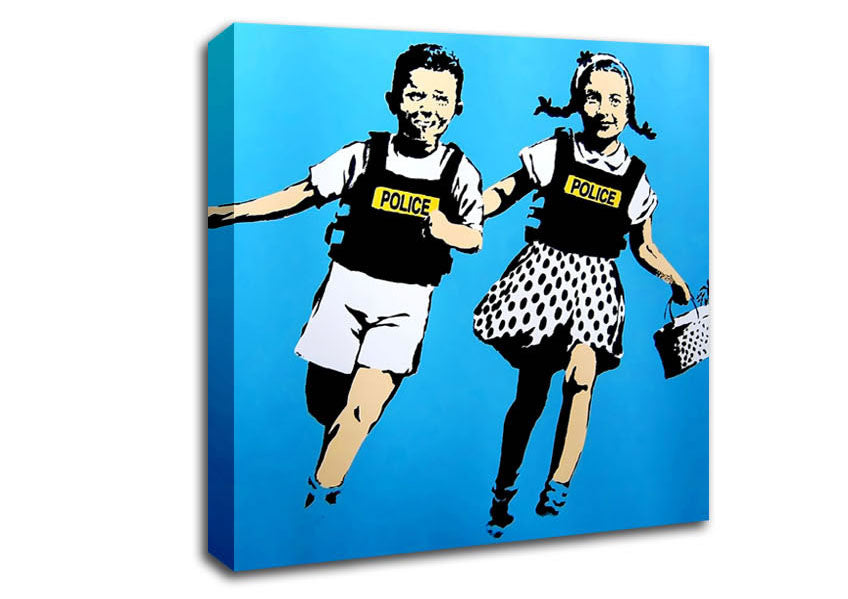 Jack And Gill Blue Square Canvas Print handmade in the UK. Stretched over a 2 inch thick wooden box frame, ready to hang on your wall.