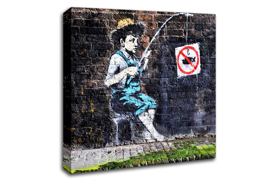No Fishing Sign Square Canvas Print handmade in the UK. Stretched over a 2 inch thick wooden box frame, ready to hang on your wall.