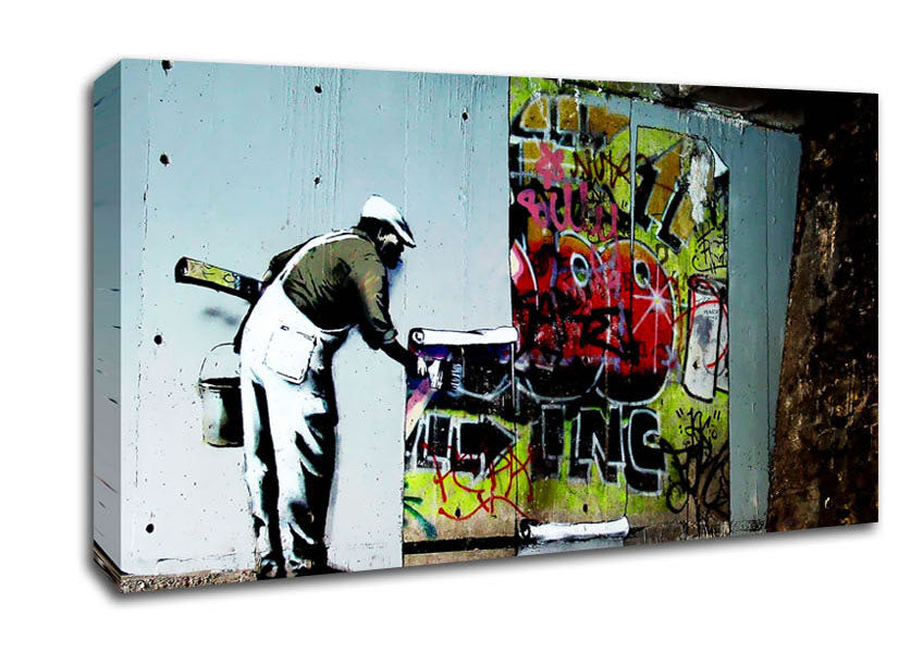 Grafitti Wallpaper Wide Canvas Print handmade in the UK. Stretched over a 2 inch thick wooden box frame, ready to hang on your wall.