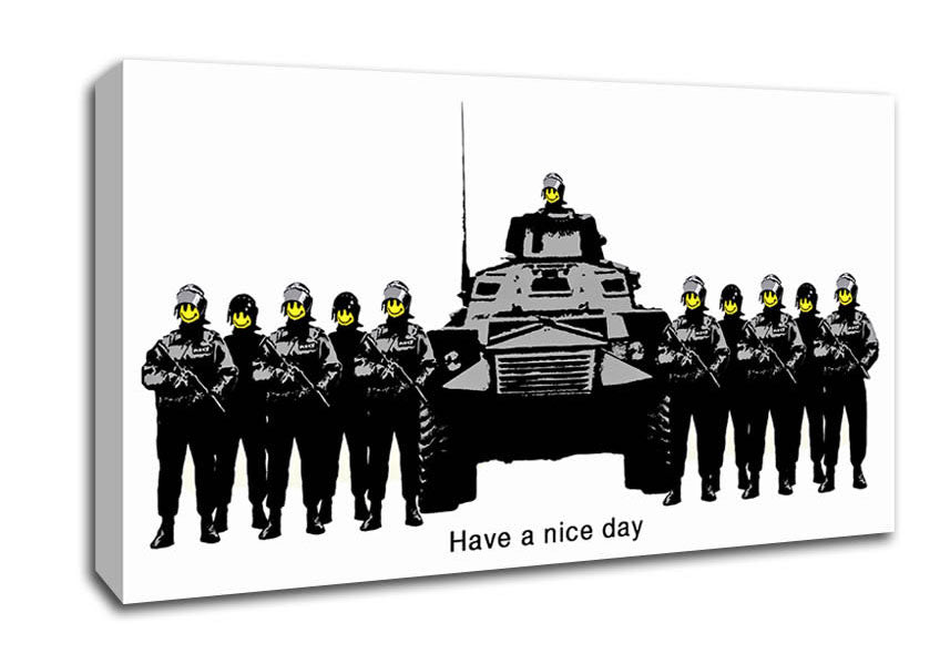 Have A Nice Day White Wide Canvas Print handmade in the UK. Stretched over a 2 inch thick wooden box frame, ready to hang on your wall.