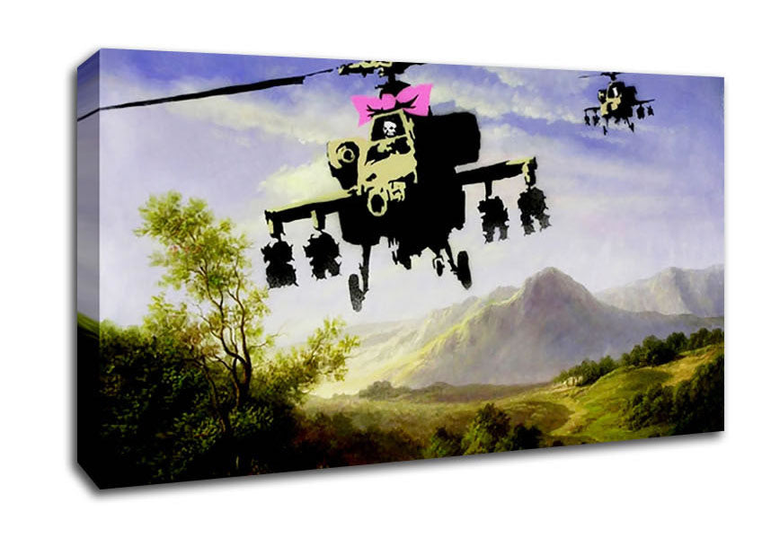 Helicopter Bow Wide Canvas Print handmade in the UK. Stretched over a 2 inch thick wooden box frame, ready to hang on your wall.