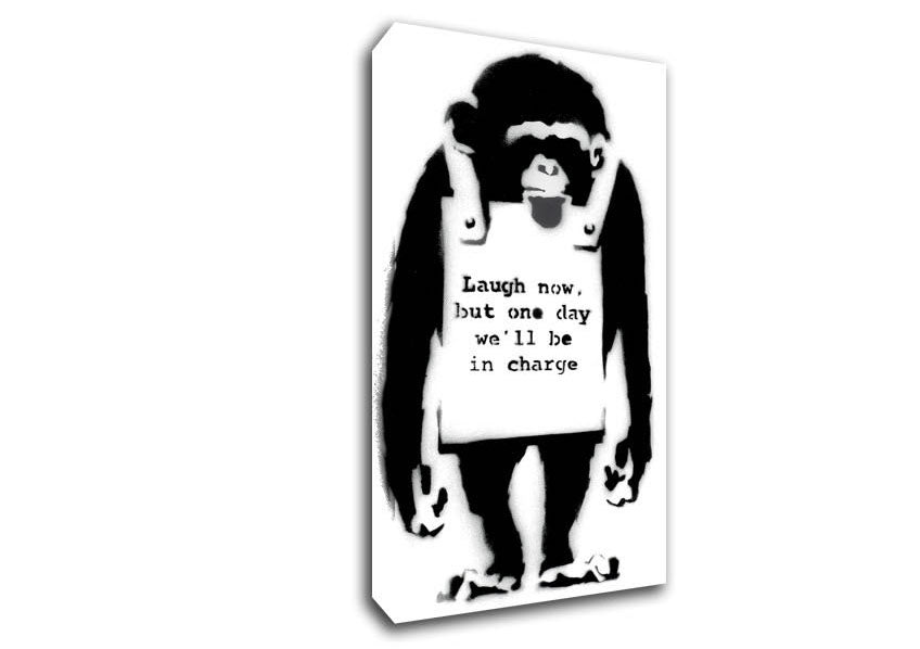 Laugh Now Monkey Wide Canvas Print handmade in the UK. Stretched over a 2 inch thick wooden box frame, ready to hang on your wall.