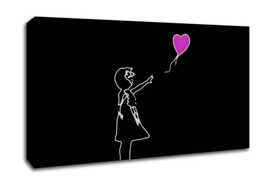 Love Balloon Black Pink Wide Canvas Print handmade in the UK. Stretched over a 2 inch thick wooden box frame, ready to hang on your wall.
