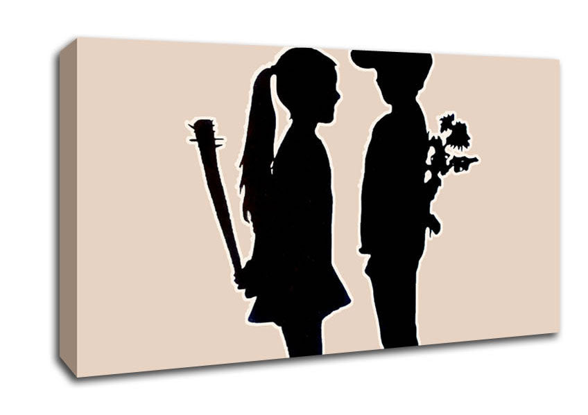 Love War Kids Wide Canvas Print handmade in the UK. Stretched over a 2 inch thick wooden box frame, ready to hang on your wall.