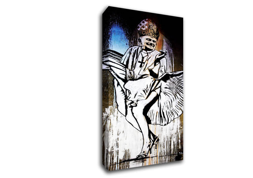 Marilyn Monroe Pope Wide Canvas Print handmade in the UK. Stretched over a 2 inch thick wooden box frame, ready to hang on your wall.