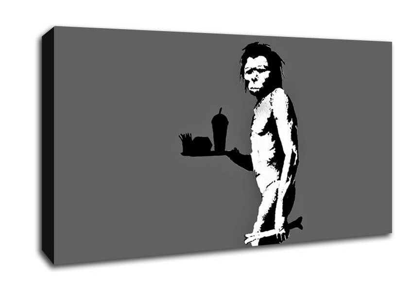 Mcdonalds Caveman Grey Wide Canvas Print handmade in the UK. Stretched over a 2 inch thick wooden box frame, ready to hang on your wall.