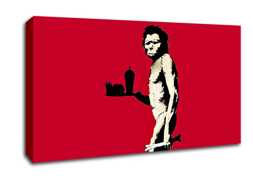 Mcdonalds Caveman Red Wide Canvas Print handmade in the UK. Stretched over a 2 inch thick wooden box frame, ready to hang on your wall.