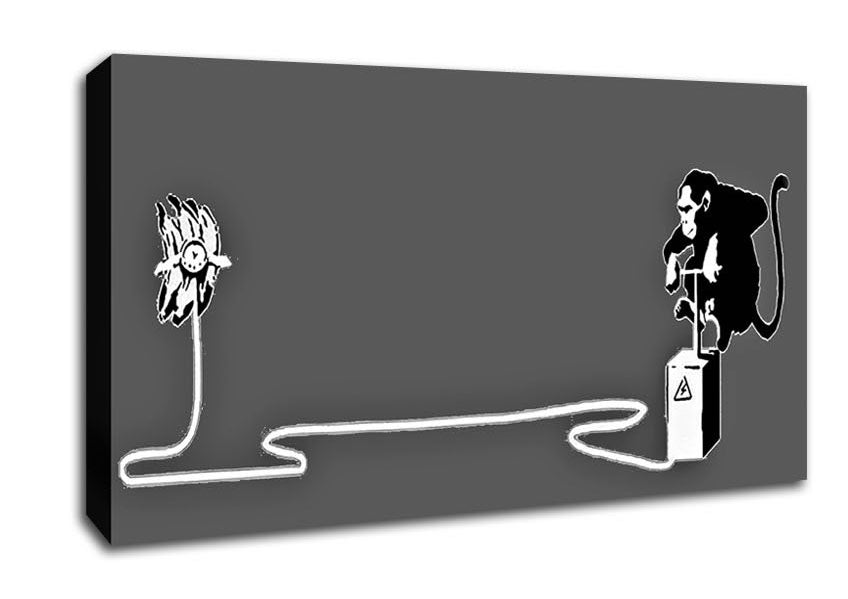Monkey Banana Blaster Grey Wide Canvas Print handmade in the UK. Stretched over a 2 inch thick wooden box frame, ready to hang on your wall.