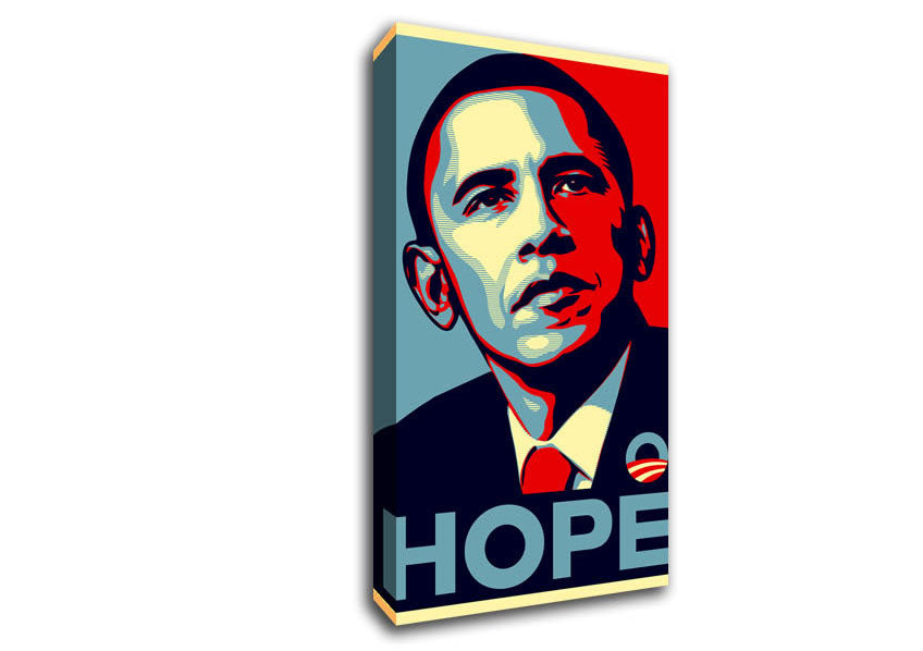 Obama Hope Wide Canvas Print handmade in the UK. Stretched over a 2 inch thick wooden box frame, ready to hang on your wall.