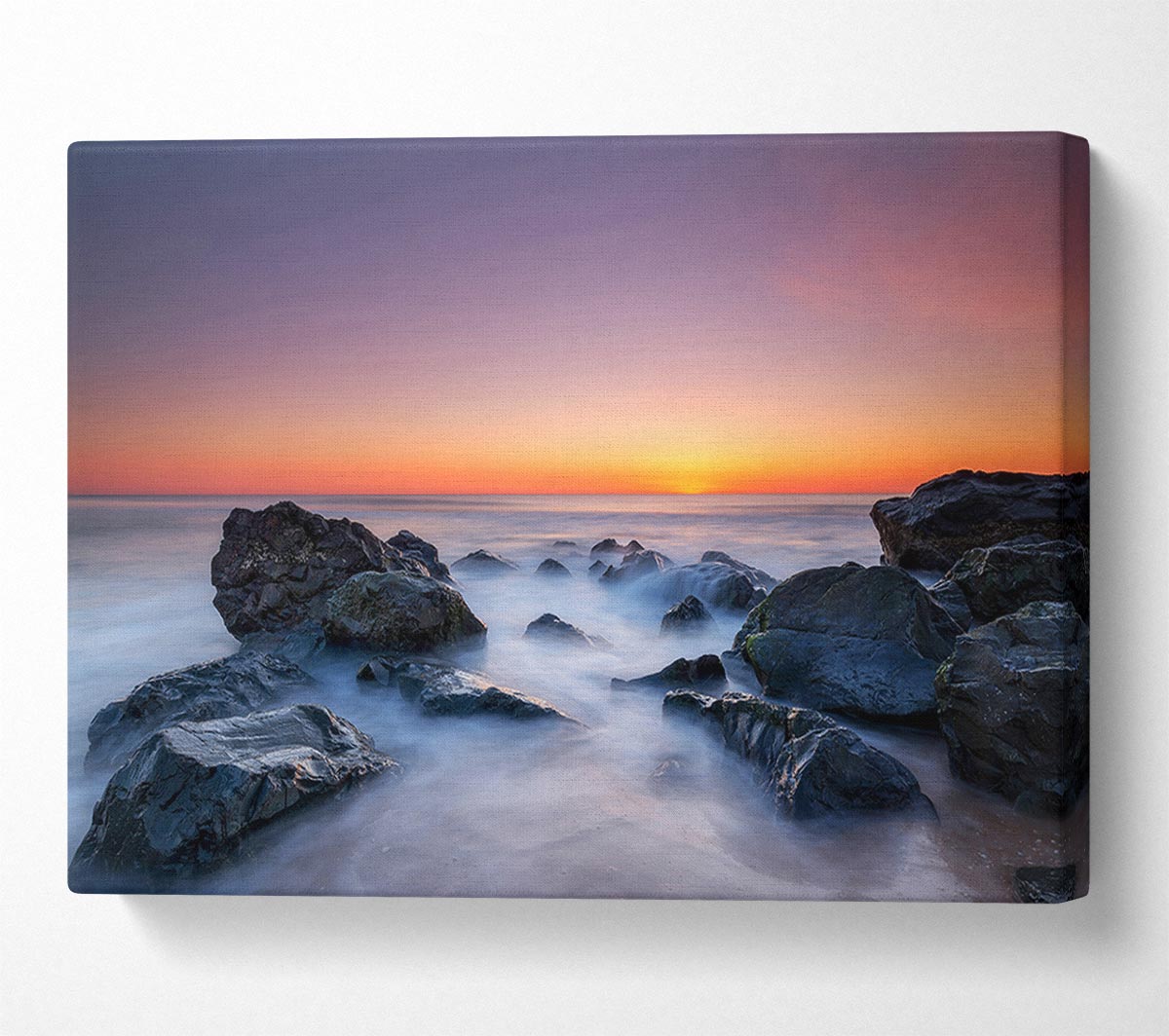 Ocean Rock Dream Canvas Print handmade in the UK. Stretched over a 2 inch thick wooden box frame, ready to hang on your wall.